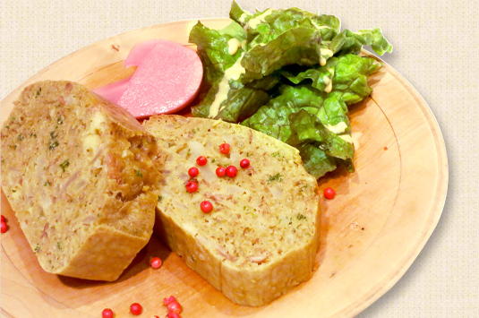 を型に流し入れ、180℃に予熱しておいたオーブンで火が通るまで焼く。焼けたら型から出し、切り分ける。