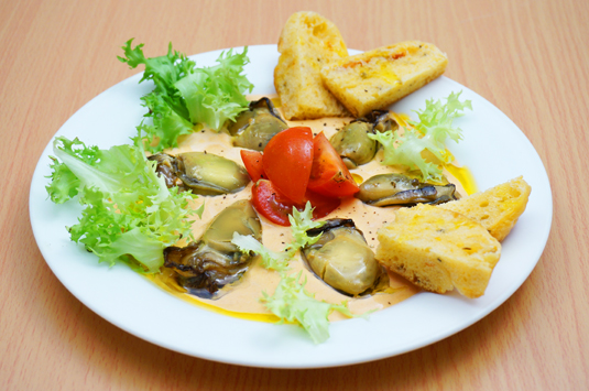 本当に、本当に、調理の手順は、混ぜて、盛りつけるだけ。濃厚なカキの旨みを、充分に堪能できます。混ぜるだけ、の、こちらも缶詰を使ったソース、キレイな、ピンク色。パーティーのスタートにも、眼を引くかわいらしさです。