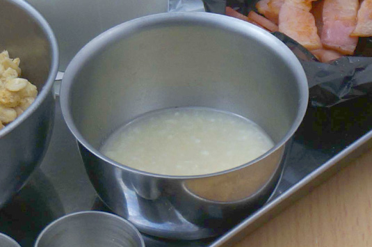 に、ベーコンと塩・こしょうを添える。
