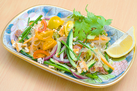 もどした春雨が、温かいうちに、調味料と和えることで、しっかりとした味わいに仕上がります。