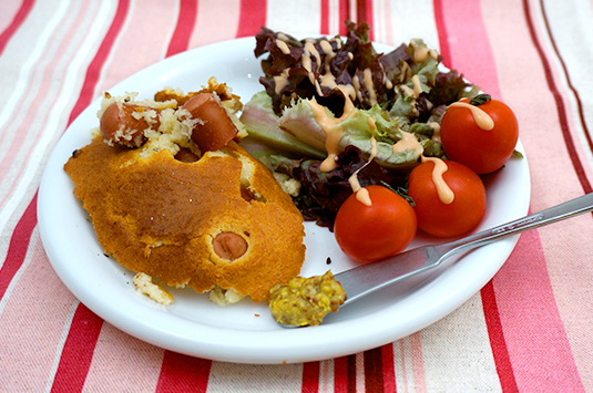 プディングと出来合いのソーセージを、一緒にオーブンで焼いてしまいます(※2)。プディングに埋もれているソーセージを、かえるに例えた、庶民的なネーミングがかわいい。