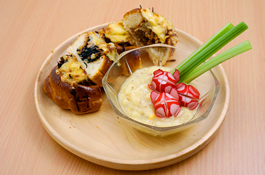 みんな大好き!マヨネーズ♡。風な、ディップです。卵不使用、ベジタリアン・フリー(※2)。例えば、コーンスープを作るとき。大さじ1取り分ければ、1缶で2品、簡単にできます。惣菜なし、ディップONLYでトーストしても。