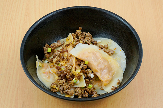ぎょうざのアンは、加熱しなくても、そのまま食べられる具材。だから、ゆでるのは、あっという間、皮が透きとおったらOKです。